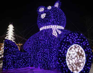 This 16′ 3D Teddy Bear Holiday Lighting Display can be fully customized with any color garland, mini lights or rope lights. Can be manufactured to multiple size specifications. As shown: blue garland, blue 5mm mini lights, white garland, white 5mm mini lights and cool white rope light.