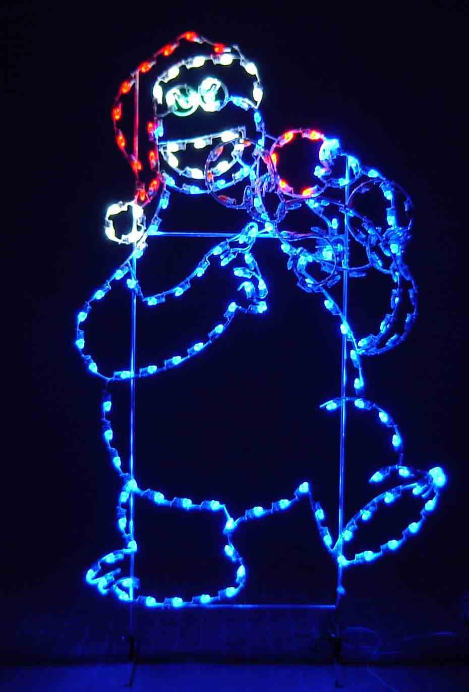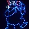 This 8′ Ground Mounted Silhouette Animated Cookie Monster with Santa Hat throwing a cookie into his mouth Christmas decoration is made with a heavy-duty steel rod construction, along with a corrosion-resistant powder coating. Commercial grade wiring is then applied, which is secured by our heavy-duty clips and nylon ties.