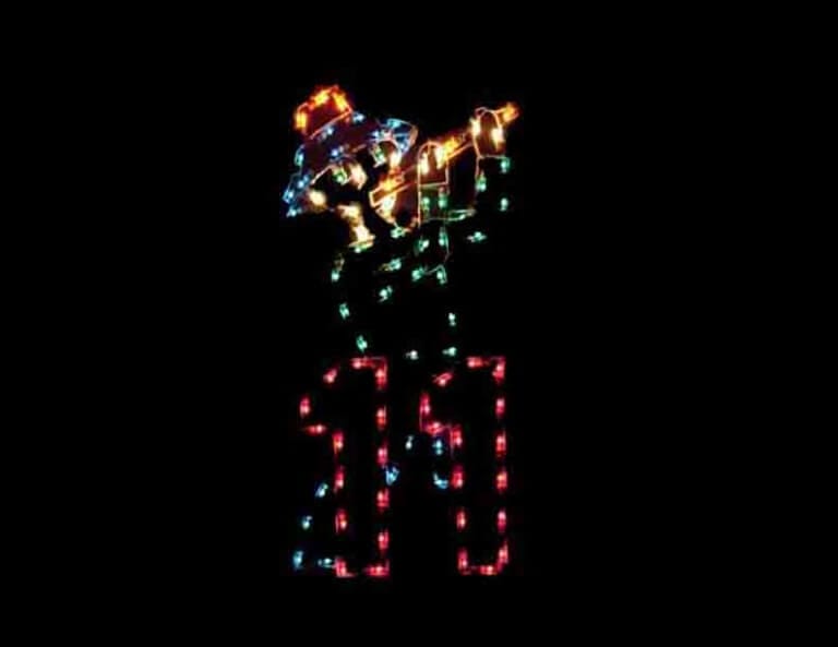This 8′ Twelve Days Of Christmas – Day 11 Holiday Light Display is a beautiful ground-mounted display with the charm of a piper piping and the number 11. This lit display captures the musical melody of the traditional carol, creating a festive scene filled with warmth and cheer, making it a delightful holiday centerpiece. Perfect for farms, town squares, and drive-thru parks!