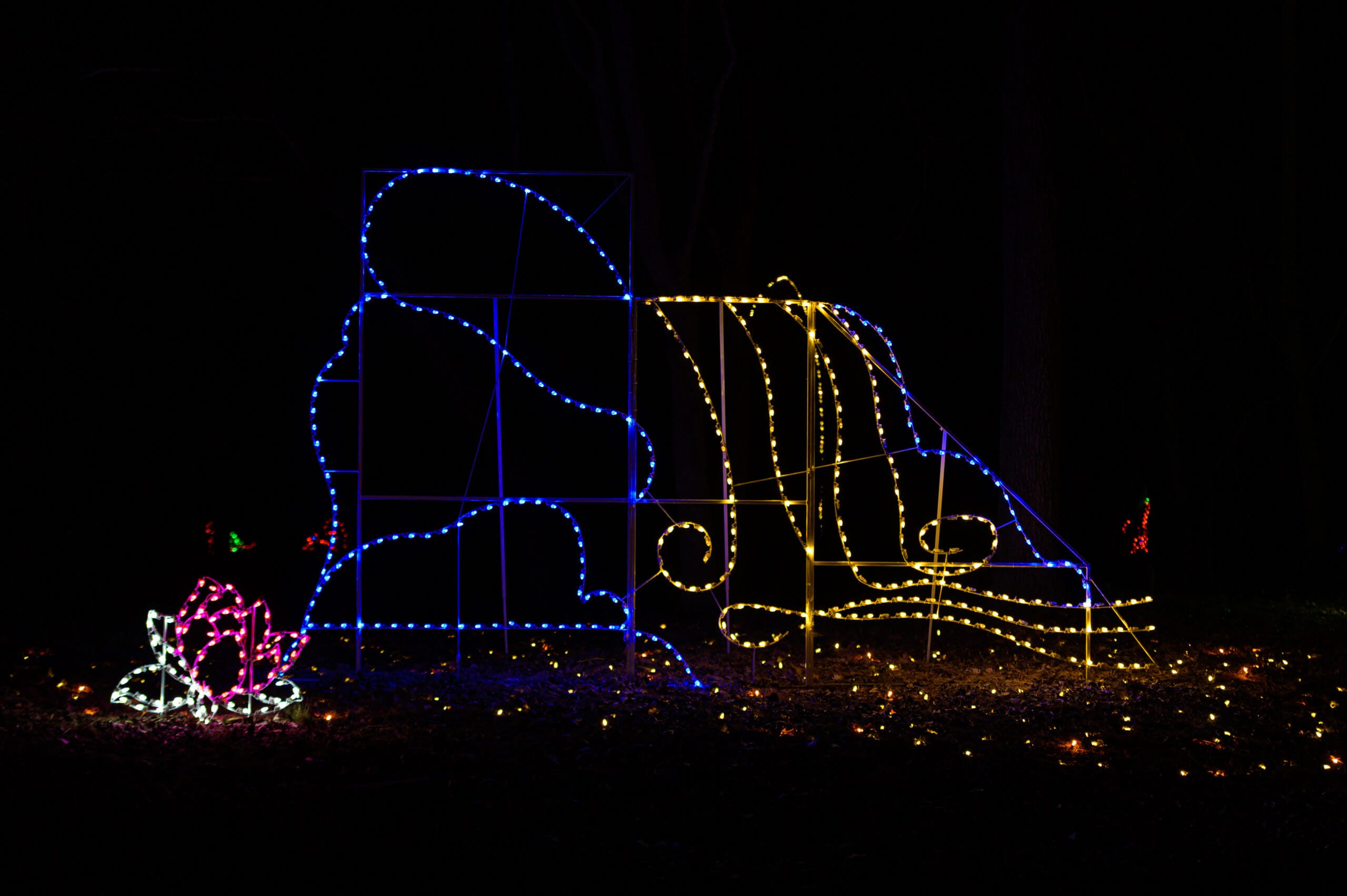 We use the latest LED technology, Minleon® C7 SMD LED lights, and build a sturdy foundation for our light displays with heavy-duty steel rods and a corrosion-resistant powder coating to protect against wear and tear. It’s important for us to use only the best materials, like commercial-grade wiring, which we secure with heavy-duty clips and nylon ties for a seamless and reliable installation.