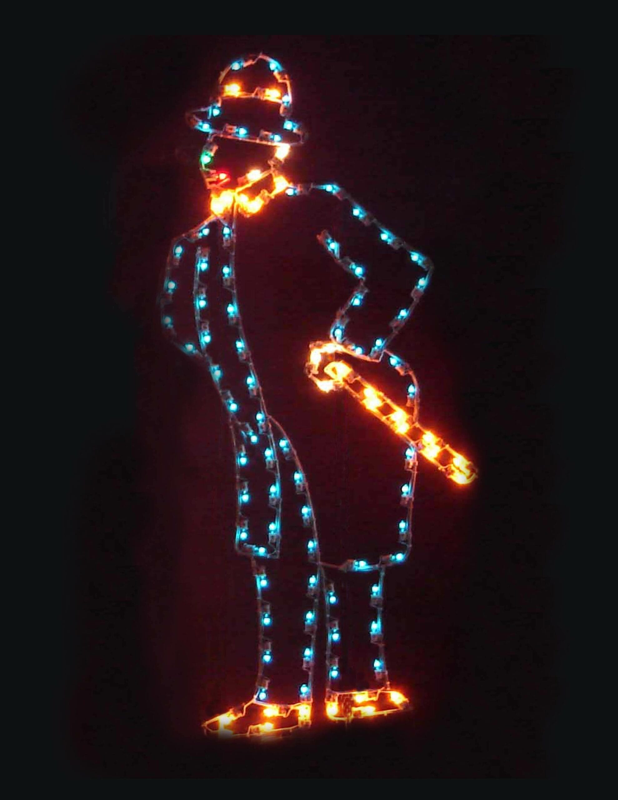 This 7-foot Ground Mounted Silhouette Yuletide Policeman Christmas decoration is made with a heavy-duty steel rod construction, along with a corrosion-resistant powder coating. Commercial grade wiring is then applied, which is secured by our heavy-duty clips and nylon ties.