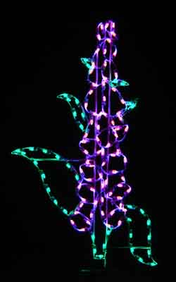This 6′ X 4′ Ground Mounted Foxglove Silhouette decoration is made with a heavy-duty steel rod construction, along with a corrosion-resistant powder coating. Commercial grade wiring is then applied, which is secured by our heavy-duty clips and nylon ties.