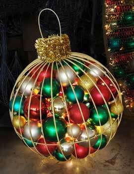 This Silver Cage Ornament Holiday Display has a powder coated steel frame with garland cap and filled with ornamentation. Available in any combination of ornamentation, garland and powder coat color.